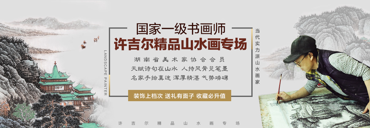 进门玄关挂什么画寓意好?选择许吉尔老师的山水画装饰意境大气更清新自然,改善家居的自然氛围,催旺家中的风水财运,从而让您拥有一个优质的进门环境!