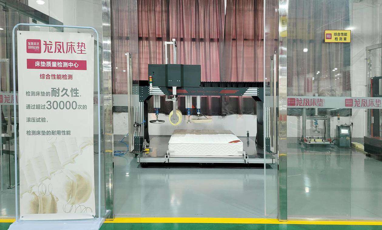 龙凤家居集团投入数百万元,在新落成的生产展示中心二楼设立了床垫质量检测中心实验室,配置专业检测设备,按照国家及行业标准检测各项指标,确保产品从原料到成品的安全可靠。