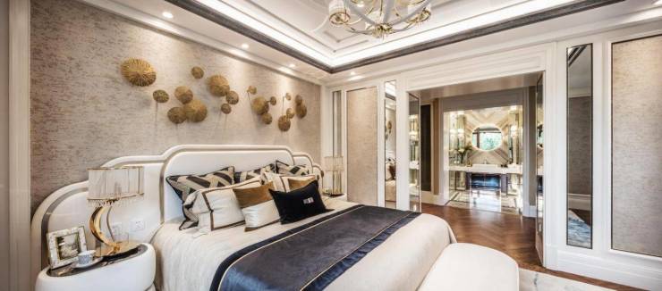 主卧套房以奢阔尺度、豪华主卫及走入式衣帽间重构静谧私享的休憩场域,与次卧套房共同构织就双重尊崇的生活情调。关照两代人的“同檐不同频”的私境美好。