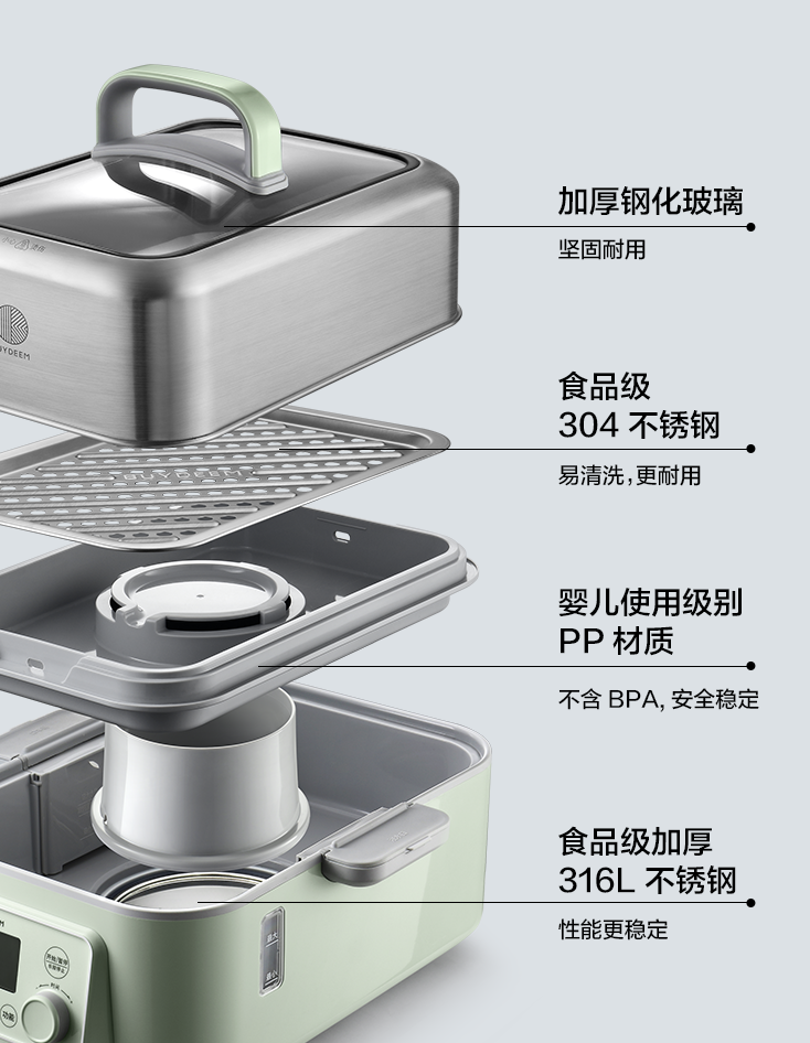 这样看来,北鼎有双层蒸架,蒸煮有更多的选择性,但是结构比较零碎,使用起来有些繁琐,相对摩飞来说,性价比也不是很高。