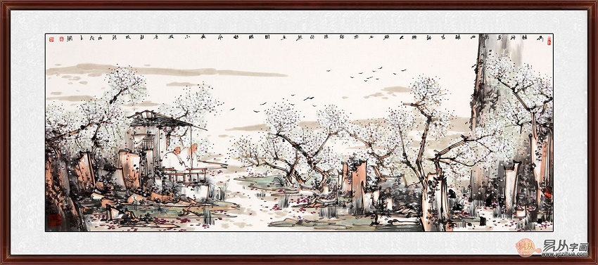 实力派画家鞠占圃山水画作品《花与人间事一同》【作品来源:易从网】