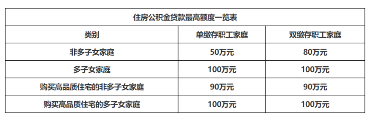 通知显示,提高住房公积金贷款最高额度,多子女家庭,购买首套或二套自住住房的,住房公积金贷款最高额度提高至100万元;购买高品质住宅的职工家庭,住房公积金贷款最高额度提高至90万元。