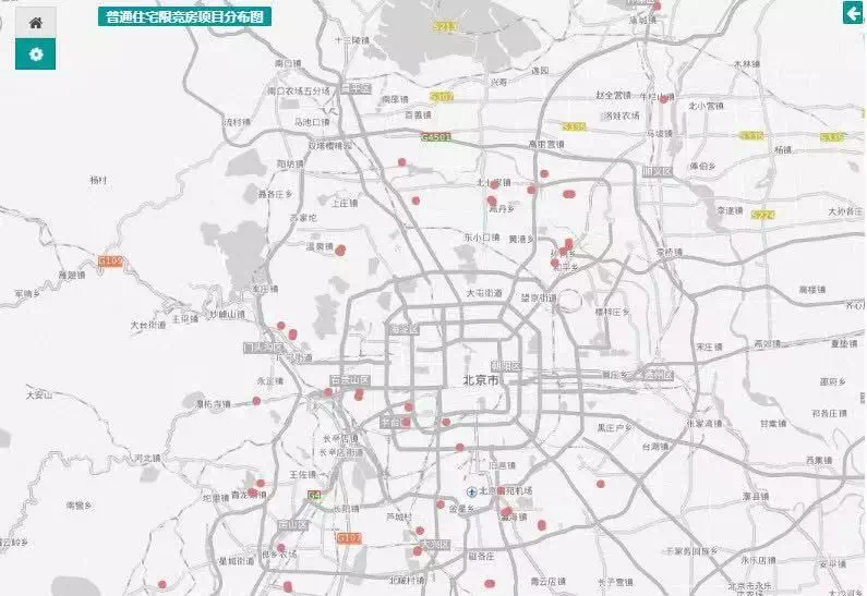 ▲北京限竞房项目分布图,基本上都是位于五环外郊区。