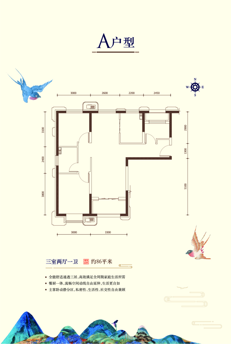 南北通透,户型方正,全明户型。 经典设计,布局考究,巧妙实用,功能区分合理,利用率高。灵动空间设计,舒适尺度设计,优雅天成,彰显主人生活气度。