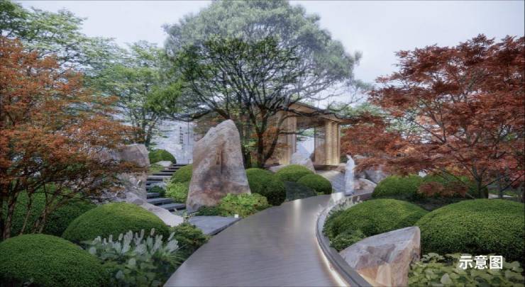 同时,在园林的打造上,采撷宋·赵伯驹 《江山秋色图》灵感,以宽幅中央景观园林为核心,精琢每一处小品、每一处景墙、每一处廊桥、每一个区域硬铺装,打造一处古今共鸣、汇尽风雅的画里桃源。