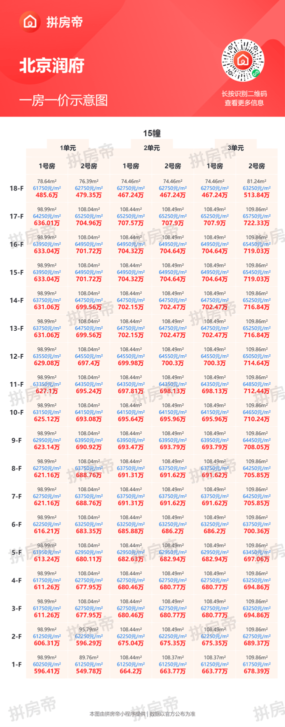 【一房一价表】
