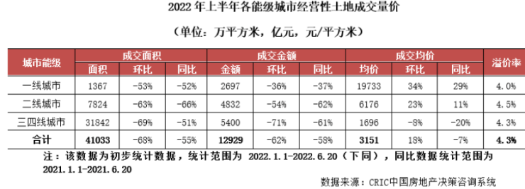 “各线城市住宅用地供求规模均下降,优质地块增加带动一线和二线城市住宅用地成交楼面均价结构性上涨。从22城首批集中供地来看,供地规模继续缩量,土拍规则继续调整放宽,但多城市成交热度仍在低位,土拍热度分化明显,房企整体拿地仍偏谨慎,国央企仍为拿地主力。”