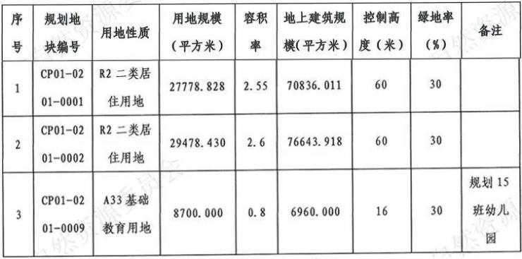 出让的地块组团包含2个住宅地块和一个幼儿园用地,其中住宅地块容积率为2.55/2.6,控高60米。