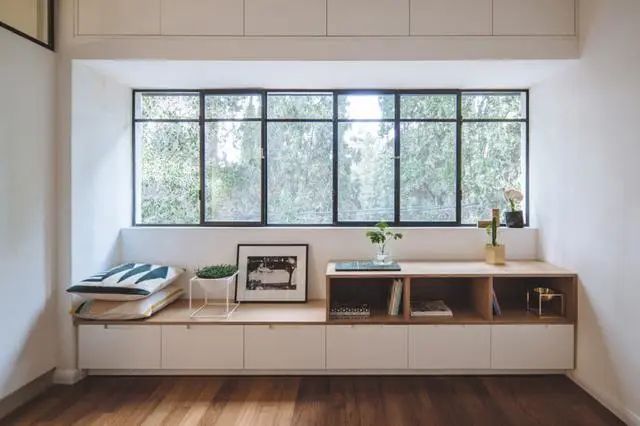 窗边空间都别浪费,跟着这位业主学装修!150平方窗边空间这样设计,一个窗边空间打悬空书桌做书房,另一个窗边空间打卡座做休闲区,多了2个功能区不说,还为家里省了30平空间。