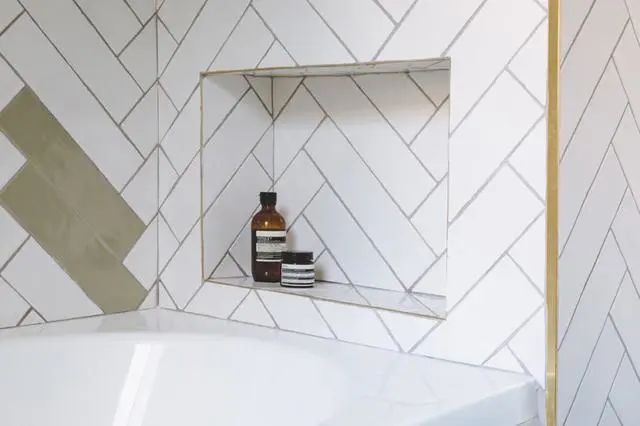 内部浴缸的墙面处做个壁龛,放置一些常用洗漱用品,拿取都非常方便。