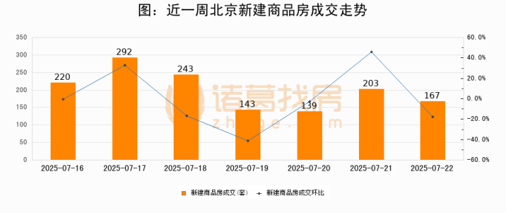 【北京成交日报】07月22日新房成交167套、二手房540套;涨价房源61套