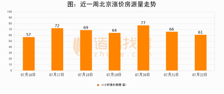 根据诸葛找房数据显示,北京24小时涨价房源量为61套,较07月21日减少5套,环比下降7.6%。与此同时,涨价房源占比小幅回落,对于购房者来说是一个入市窗口期,购房者可抓住时机入市。