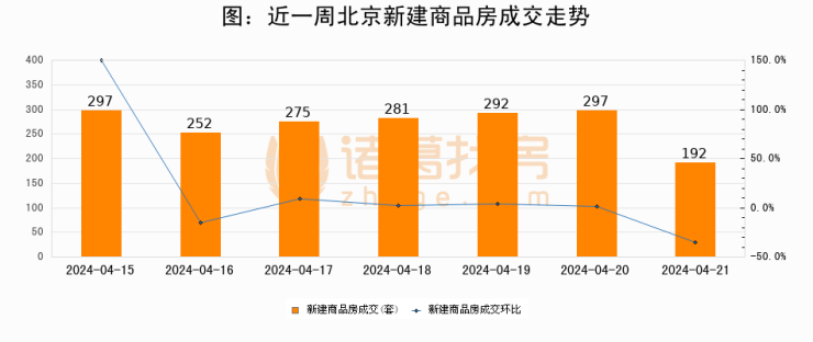 【北京成交日报】04月21日新房成交192套、二手房103套;涨价房源160套