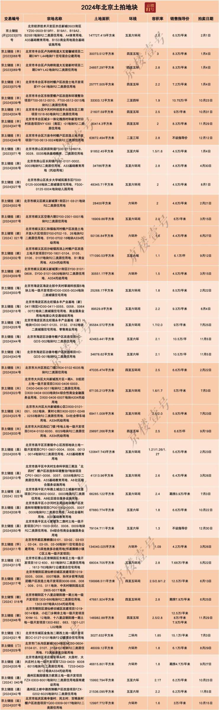 2024年北京共成功出让41宗住宅用地,比去年下降32.79%;