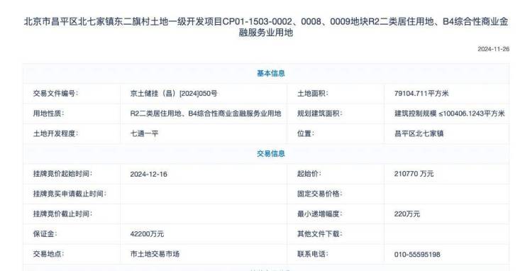 地块起拍价21.077亿元,未设置地价上限,也未设置商品房销售指导价。