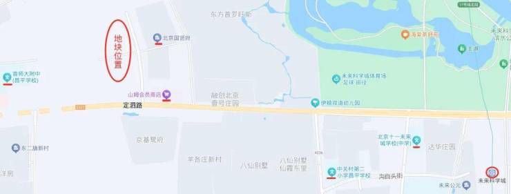 地块位置在昌平北七家镇,定泗路北侧,东侧紧挨着在售新盘北京国贤府,附近配套资源不错。