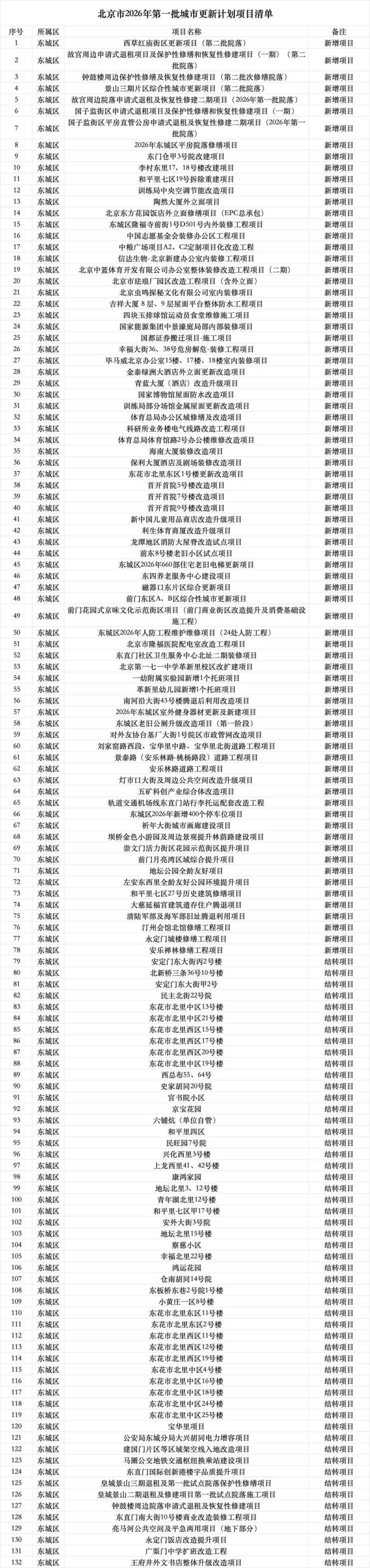 北京刚刚公布了2026年首批城市更新名单,这是继“十五五”规划开局后,北京在城市更新领域的首份年度重磅清单。