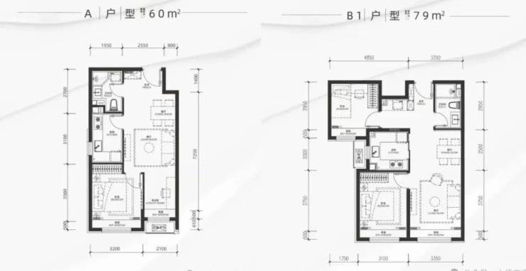 户型分布上,有79平两居的变异户型南北通透但是临街,会有噪音干扰。