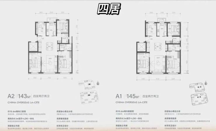 虽然两居和三居多多少少有点小缺陷,但是四居户型很通透的,很方正,都保证了南向三面宽,总价大概870W,很适合预算充足的改善家庭,真真正正蹭上了海淀北产业外溢的红利。