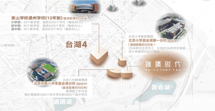 而璀璨时代与名校供地仅百米之遥:至北京小学嘉会湖第一分校,步行8分钟(直线约300米);至北京八中嘉会湖分校,过街即达(约100米),真正“目送式入学”。