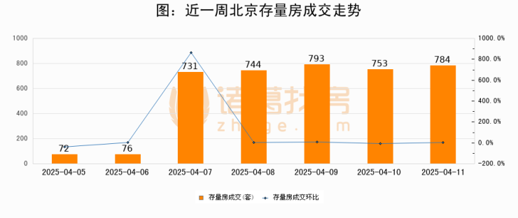 从存量房来看,2025年04月11日北京存量房单日成交784套,比昨日增加31套,环比上涨4.1%。从近一周存量房成交来看,北京存量房日均成交套数为564套,04月11日单日成交784套,高于近一周平均水平39%。