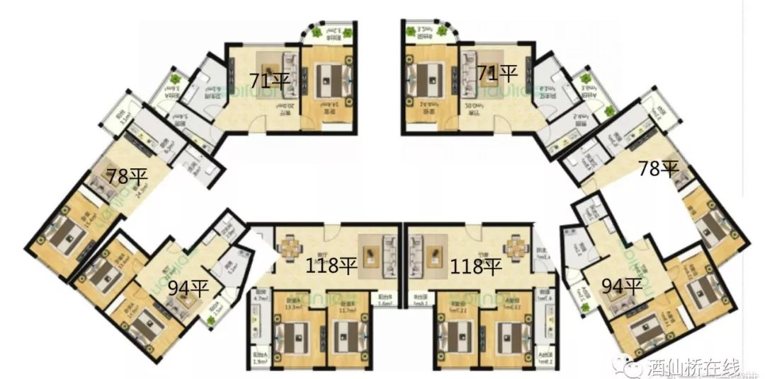 36号楼多了一个单元,共5个单元,多了一个两梯三户的单元,总高19层