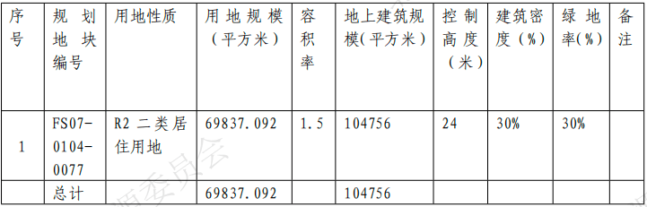 地块占地面积约6.98万平,建面约10.48万平,容积率1.5,控高24米。