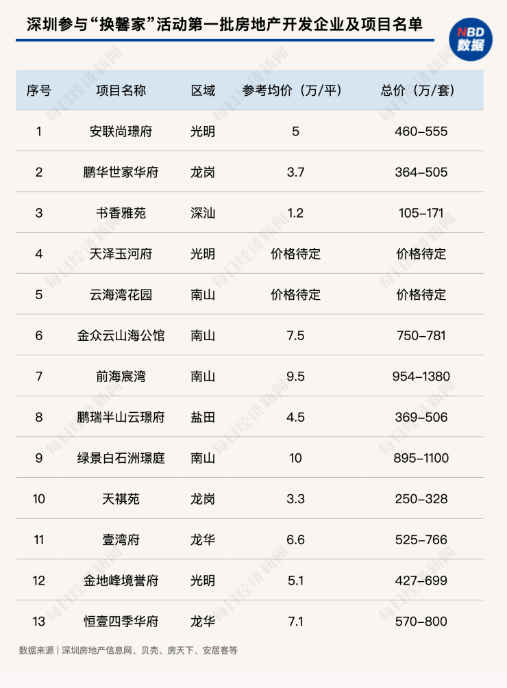 13个项目、最高单价10万/平,深圳首批“以旧换新”来了,开发商期待政策宽松