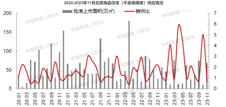 结合北京市住建委和中指研究院数据,11月北京新房取证节奏明显加快,新批房源6089套、67.91万平方米,环比分别增长116.7%、158.0%。