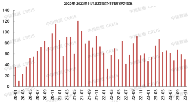 据中指研究院数据,今年1-11月,北京新房成交面积680.5万平方米,与去年同期基本持平;二手房成交14.2万套,同比增长7.8%。10月,北京新房、二手房成交规模环比均下降,11月,新房成交量进一步下行,环比下降9.3%,市场调整压力增加;二手房在以价换量下,市场保持一定活跃度,单月成交套数超1.2万套,环比增长。