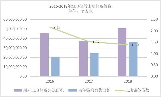 不过,绿地控股近3年来的土地储备倍数持续下降,由2016年的2.17下降至2018年的1.39。下降原因主要是2018年公司签约销售面积有大幅度上升,合同销售面积3664万平方米,同比增长50%,并且大于土地储备面积的增长速度37.09%。