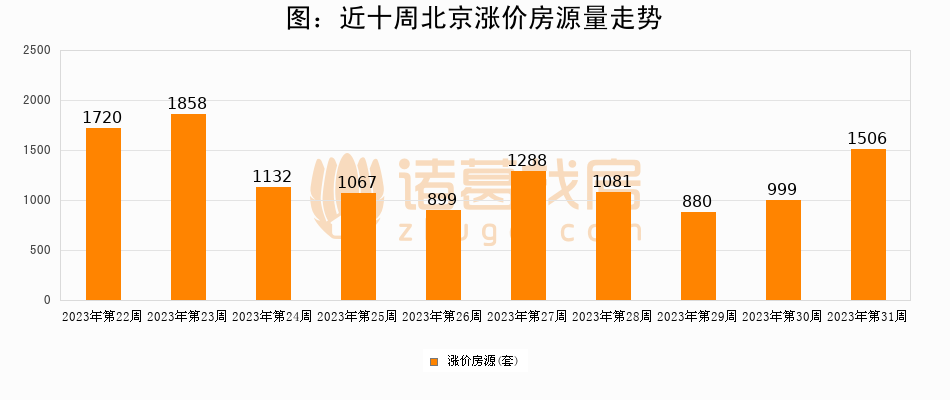 从调价房源来看,第31周北京涨价房源1506套,较上周上涨50.8%。与此同时,31周涨价房源占比提升5.46个百分点,业主信心持续恢复。
