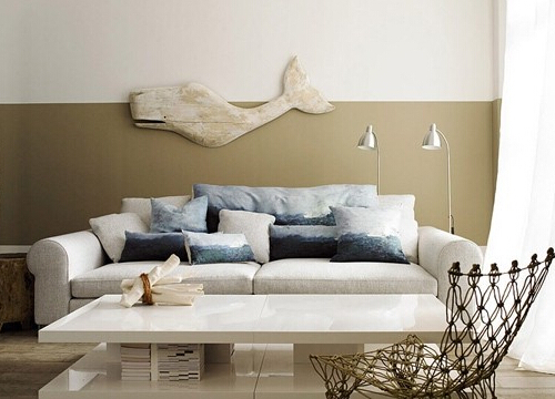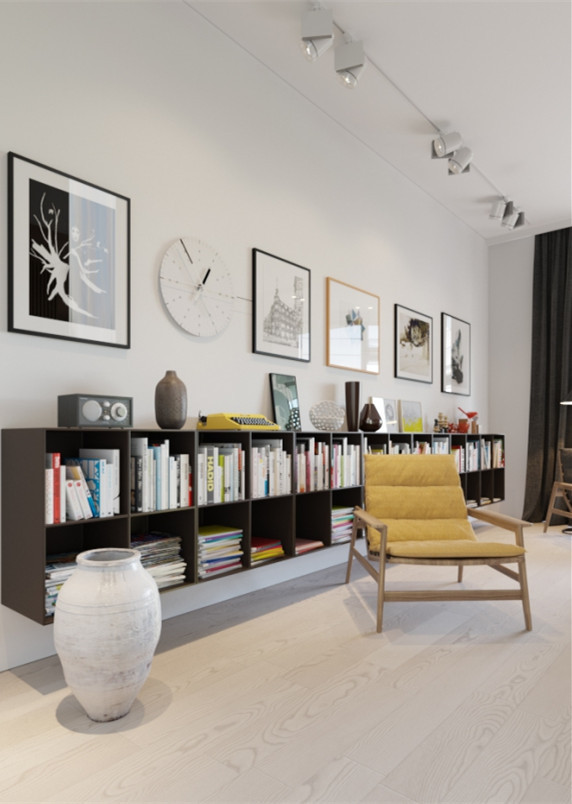 双色的墙面给人分层的错觉,上半部分保留白色,下半部分刷成深色,利用层次感拉伸视觉效果。
