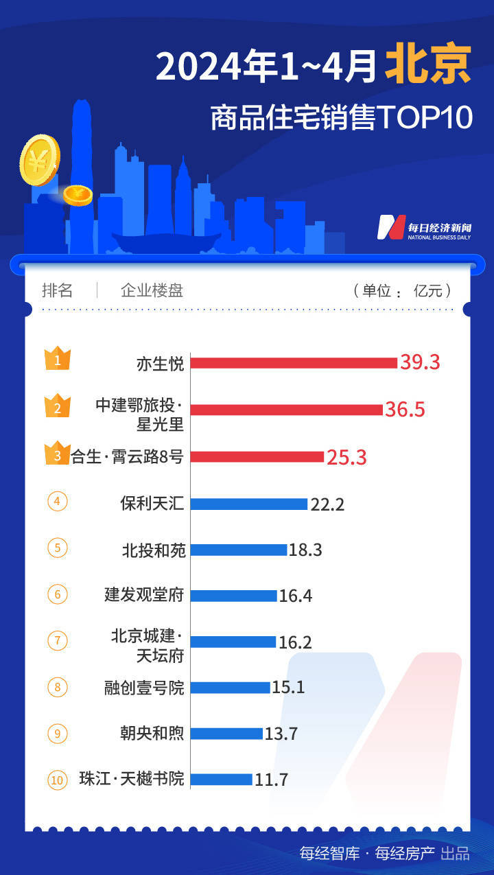 《每日经济新闻》记者梳理各城市楼盘项目前4月的销售情况发现,头部房企及本土企业继续保持优势,130个热销楼盘中,万科共有9个项目入榜,但合计销售额仅56亿元;中海地产尽管只有7个项目入榜,但销售额总额超过227亿元;而绿城中国则凭借在上海、杭州、西安、天津等多个项目热销,共录得销售额约188亿元。