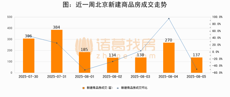 【北京成交日报】08月05日新房成交137套、二手房507套;涨价房源63套