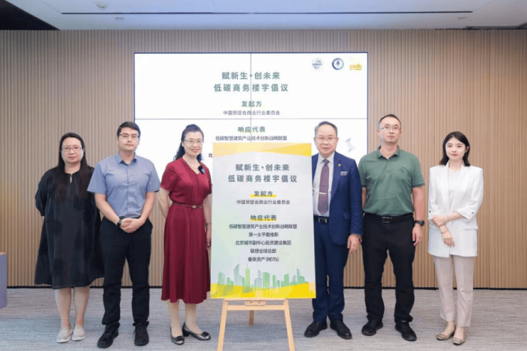 在“低碳商务楼宇创建行动”倡议环节,中国贸促会商业行业委员会任贵英书记作发起方代表,低碳智慧建筑产业技术创新战略联盟、第一太平戴维斯、北京城市副中心投资建设集团、联想全球总部、春泉资产(REITs)作为响应代表,共同向全国发出低碳商务楼宇的倡议,为实现绿色、健康、可持续的城市生活作出积极贡献。