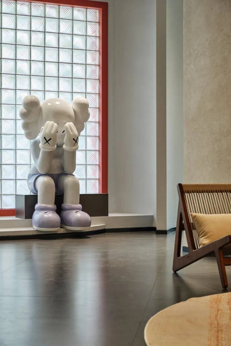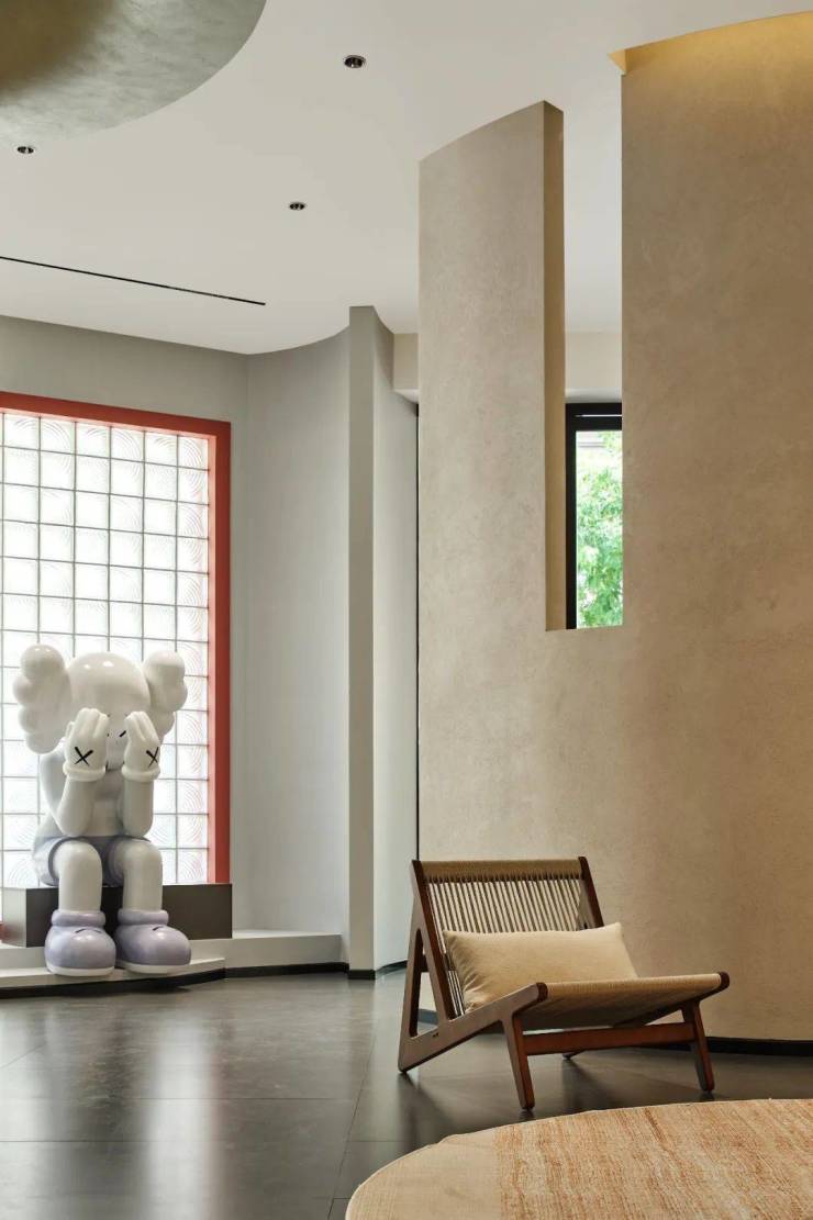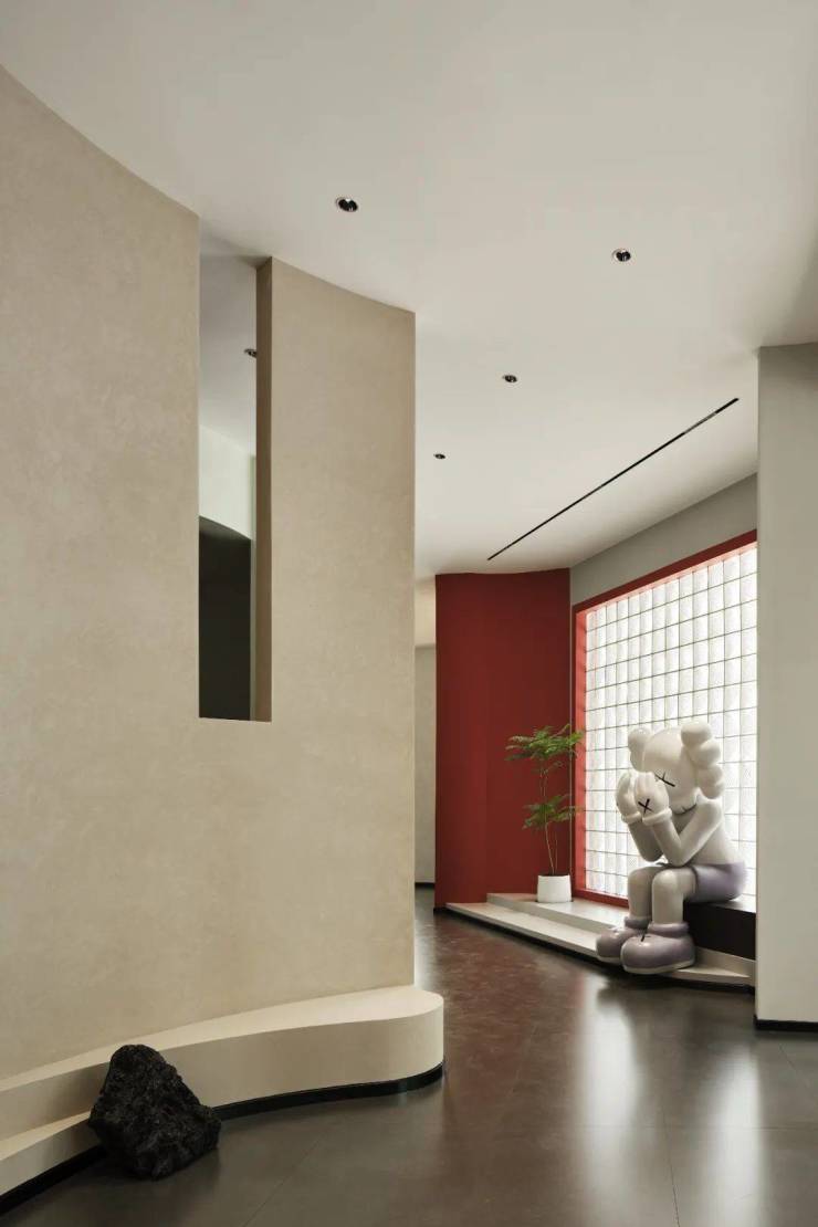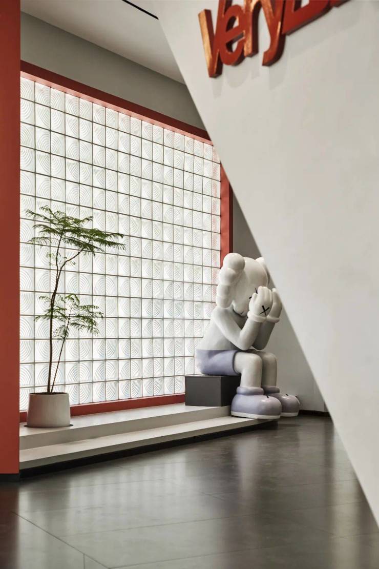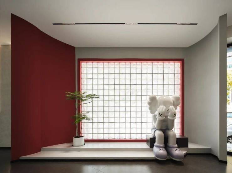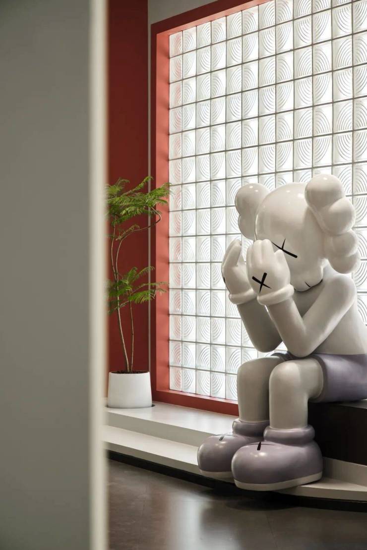 摒弃固化思维,在千篇一律的审美内卷中另辟蹊径,以整面玻璃砖墙结合艺术装置,为展厅带来更多视觉美与趣味性,也是本案生命力的鲜活表达。