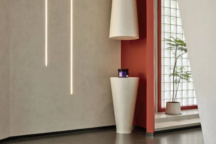 展厅最终目的是销售,所以设计师尝试表达一个非常清晰的空间。运用VERYLUX威罗玛曼奴Mamorino艺术涂料打造展厅空间,它也是意大利经典石灰基系列产品中的爆款与实力担当。