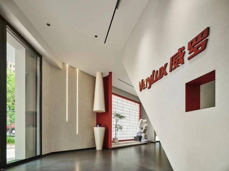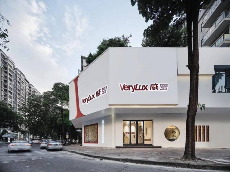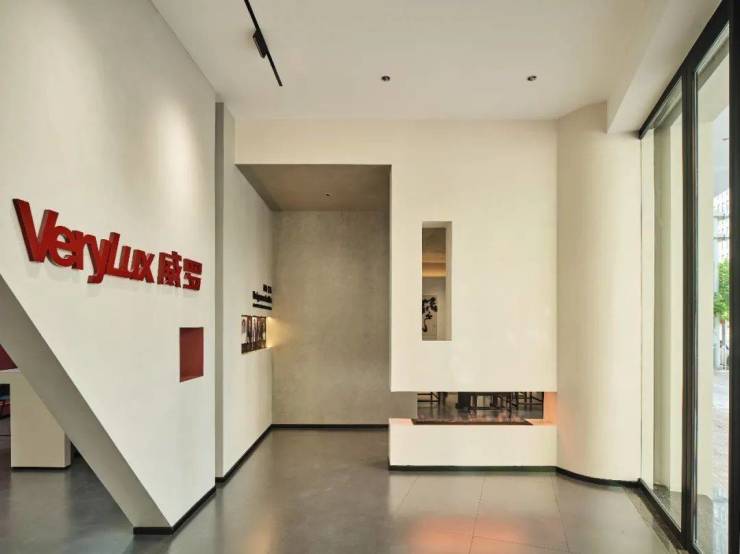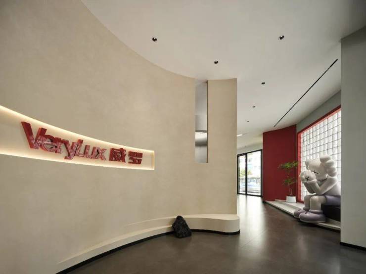 入口,以纯白为底,醒目的鲜红色VeryLux威罗鲜明展现在上方,突出品牌的独特标识,同时引导着来访者的目光。
