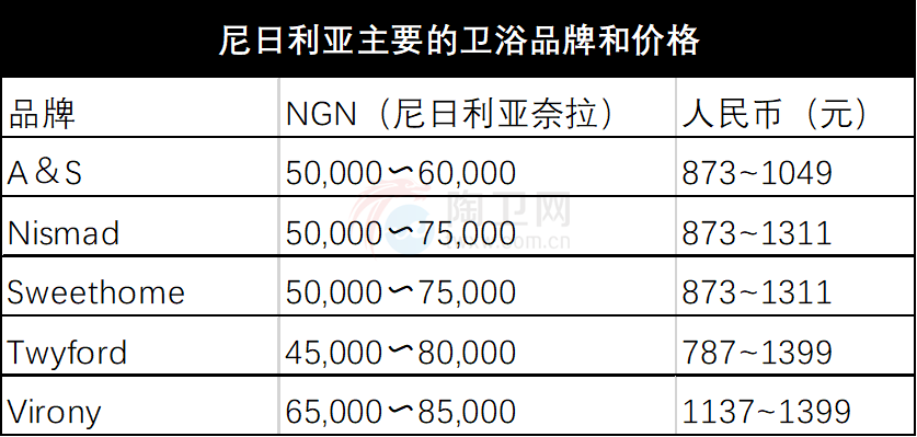 在尼日利亚比较受欢迎的厨卫品牌: