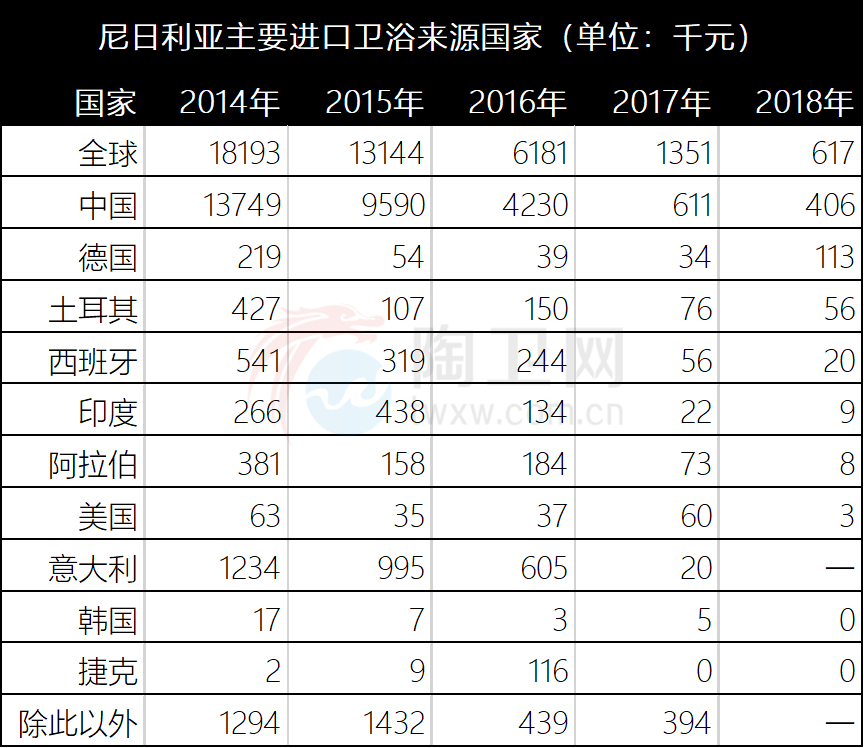 卫浴大量依赖进口的尼日利亚,前8个月向中国进口380万件