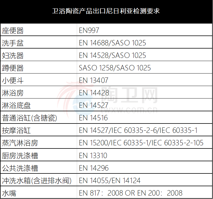 马桶的类型可大致分为普通马桶和智能马桶。普通马桶市场份额为95.13%,但占市场总收入的48.08%。根据海关数据显示,2020年前8个月中国向尼日利亚出口卫生陶瓷380万件,出口总额达到2.2亿美元。出口尼日利亚的产品,必须通过SONCAP 认证。SONCAP需要对产品质量进行两步法定必须的认证过程,以确保产品达到相关特定标准。排名前列步,PC产品认证。仅适用于初次向尼日利亚出口某一特定类别的管制产品。向尼日利亚国家标准局驻你国办事处提交资料:E-mark认证证书(DOT证书)或者通过ISO16949体系认证的工厂产品测试报告/未通过体系认证的可以再符合,ISO17025的实验室按照欧标进行检测提交检测报告、品牌注册证书、产品图片等。第二步,SONCAP强制认证,适用于某一批装船前货物。向尼日利亚国家标准局驻你国办事处提交资料:PC复印件、较终商业发票复印件一份、装箱单。
