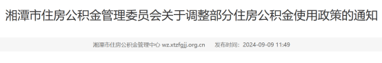 9月9日,湘潭市住房公积金管理委员会发布《关于调整部分住房公积金使用政策的通知》。