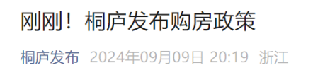 9月9日,“桐庐发布”微信公众号发布购房新政。