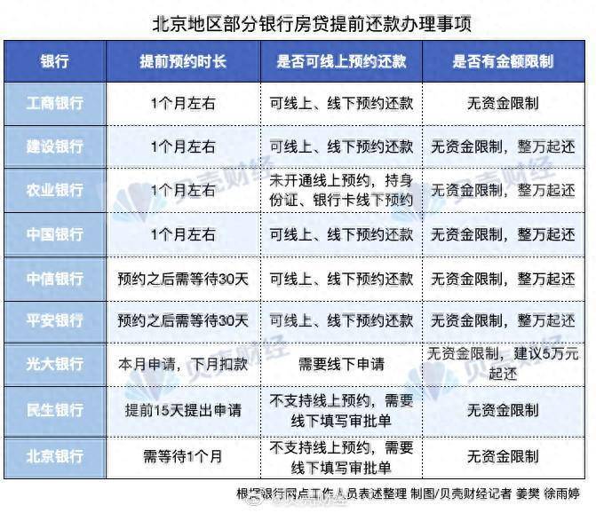 北京地区银行提前还房贷摸底,9家银行:暂无还款资金限制