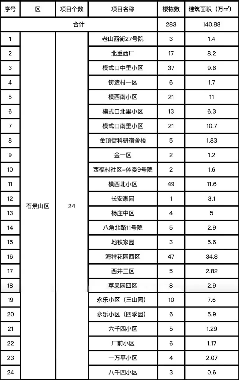此前建委已经公布了三个批次的老旧小区整治项目名单,戳这里查看: