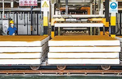 6月22日,江西省新余市江西中材新材料公司发泡陶瓷墙体材料生产线上,工人忙碌于生产新型绿色环保建筑材料。