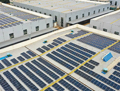 1月17日,在江苏省常州市武进区凤翔工业园厂房拍摄的屋顶光伏电站。