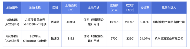 3月18日,杭州市区完成2025年第四批住宅用地出让,2宗地块均溢价成交,共计成交金额约23.75亿元。