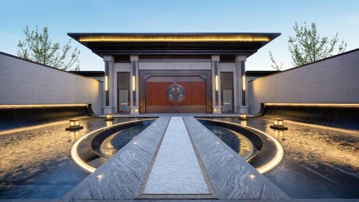 新中式的形与魂,亦藏于每一砖瓦之间。大屋檐、大立面、大门第,延续了传统礼制的尺度感;石材、金属与瓦屋顶的材质组合,则让建筑呈现出一种沉静、敦厚的东方气质。窗扇的尺寸经过精准测算,每一扇窗都是采光口,更是风景框;三层双中空玻璃,隔绝喧嚣,更保留了四时之景。